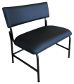 LJL5050 - Cadeira para obeso, estrutura em tubo 50x30, ch. 1.2, barramento duplo, suporte de encosto em tubo oblongo 16x30, ch. 1.50, assento e encosto fixado com lâmina de aço, madeira do assento em MDF 18mm, espuma laminada de 50mm, D33, revestimento em couro ecológico.