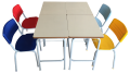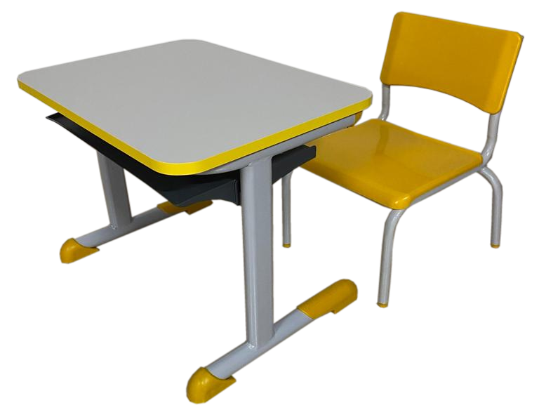 LJL5089 – Conjunto escolar infantil, tampo em fórmica com bordas em PVC, colunas verticais em tubo oblongo29x58, ch. 1.2, base inferior em tubo 1” ½, ch. 1.25, base do tampo em tubo de 1” ¼, ch. 1.25, fixação do tampo com 6 parafusos. Cadeira em tubo 7/8, ch 1.2, assento e encosto anatômicos em polipropileno, tratamento antiferrugem, pintura epóxi.