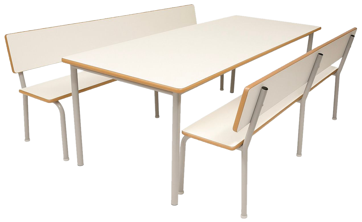LJL5010 - Conjunto refeitório infantil, bancos com encosto, estrutura tubular 20x40 e 20x30, tampos em MDF com bordas boleadas envernizadas, tratamento antiferrugem, pintura epóxi.